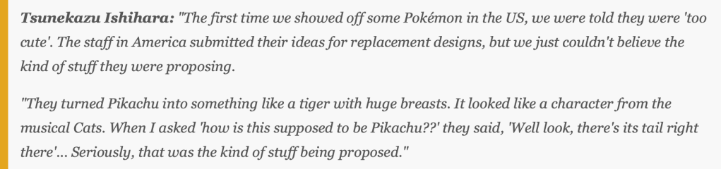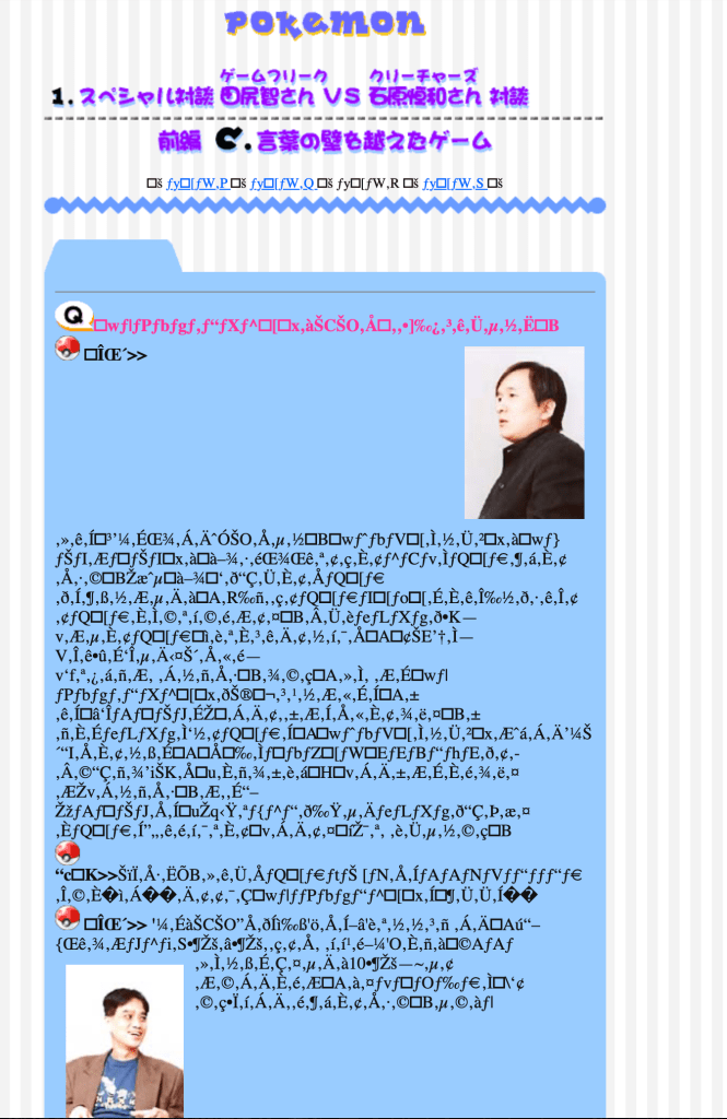 The original interview with Ishihara confirming the illustration of Pikachu with huge breasts. It’s currently on the Internet Archive, but unfortunately the page can’t be translated properly and appears to be gibberish.